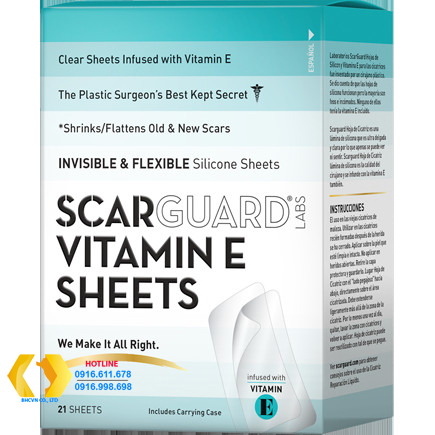 Thông báo: Từ tháng 9.2017, Hãng Scarguard của Mỹ đã đổi mẫu hộp Scarsheet thành Scarguard - Vitamin - E - Sheets